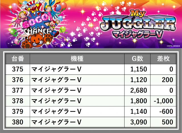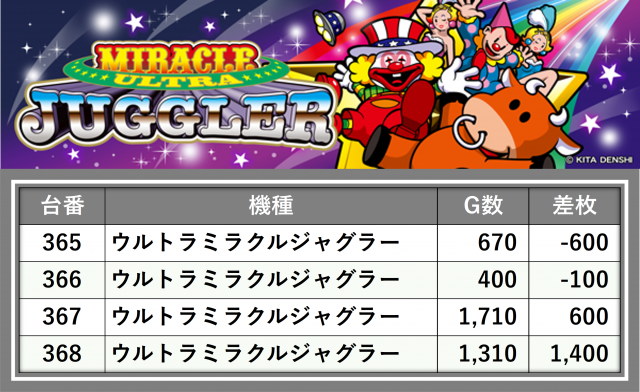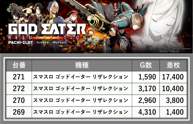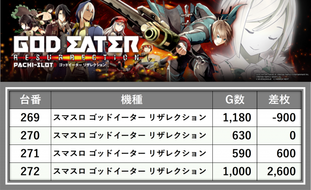 厳選された取材対象機種をはじめ、その他スロット全体から好記録が飛び出した!プレイヤーが楽しんだ1日を下記データにて振り返ってみて欲しい。