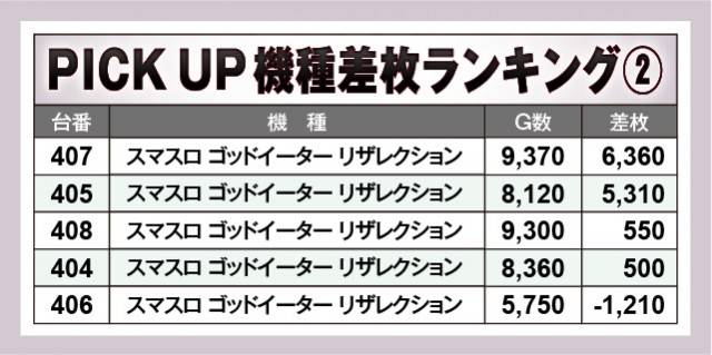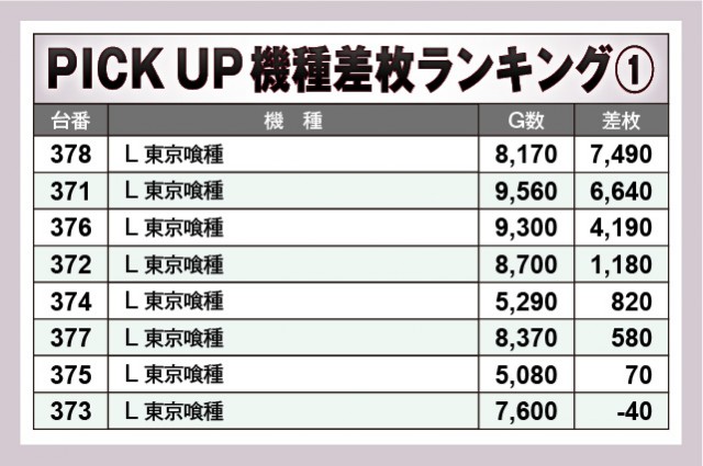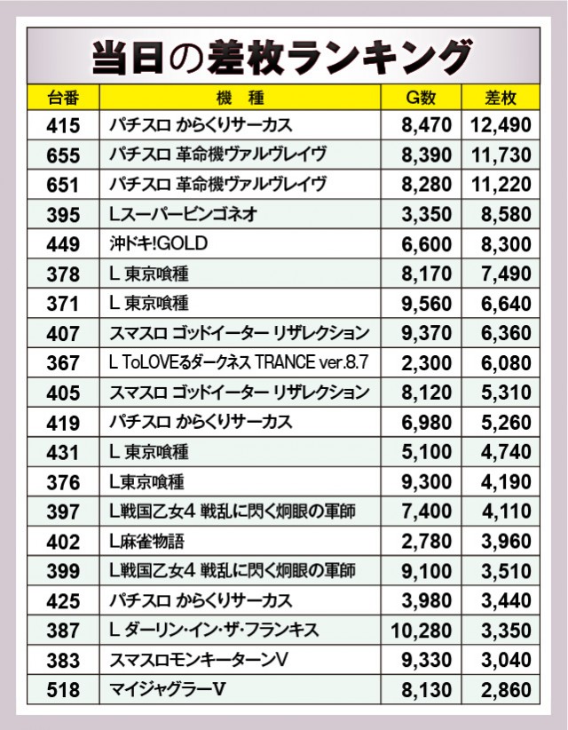※差枚数順に掲載しています。
