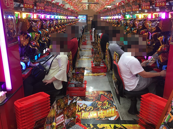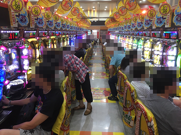 定番の海物語シリーズをはじめ、1円パチンコにもたくさんのプレイヤーが集まっていた。
