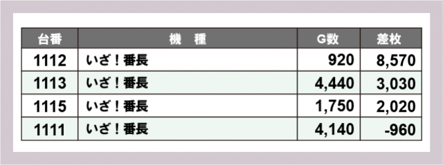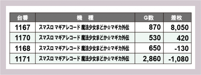 ※差枚数順に掲載しています
