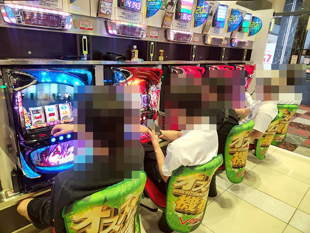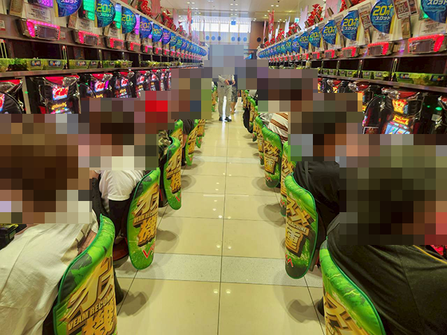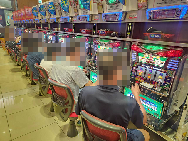 楽しそうに遊技をおこなっているプレイヤーが多く、パチンコとパチスロの両方が活気づいていた。