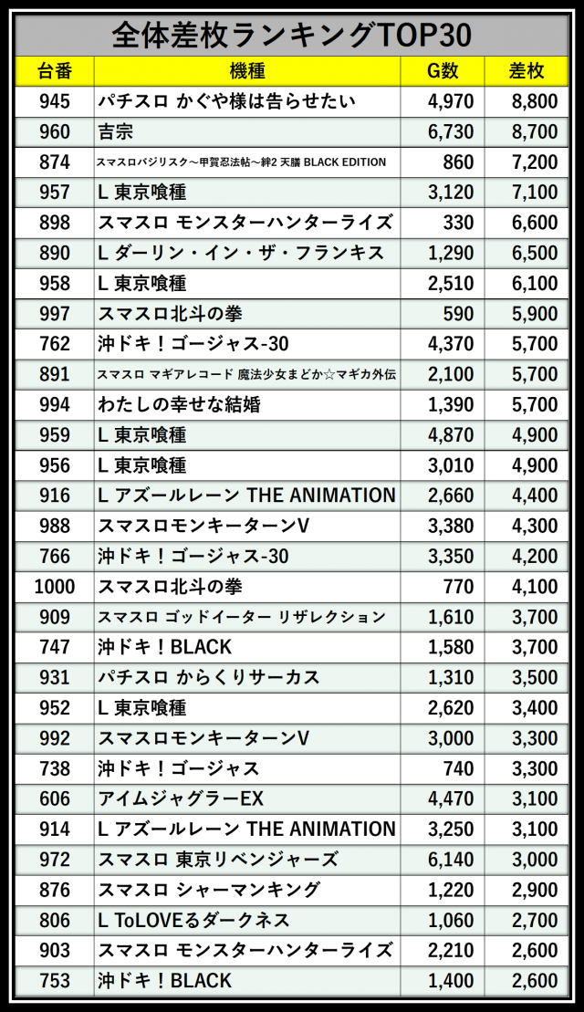 その結果の中から、ぱちタウンが注目すべきポイントを厳選してユーザーにお届け!プレイヤーが楽しんだ一日を下記データにて振り返ってみて欲しい。
