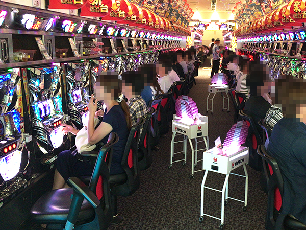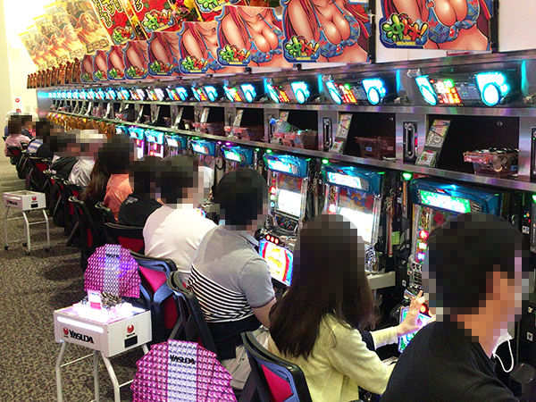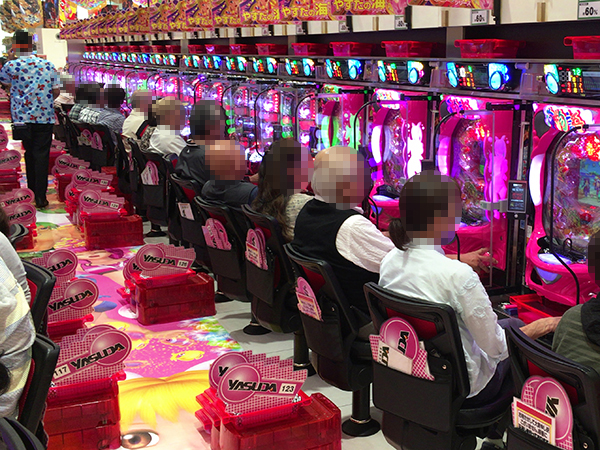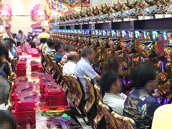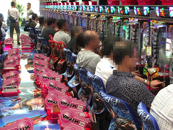 取材時、店内には既に多くのプレイヤーが集結。あふれんばかりの笑顔を浮かべながら遊技を楽しんでいた。
