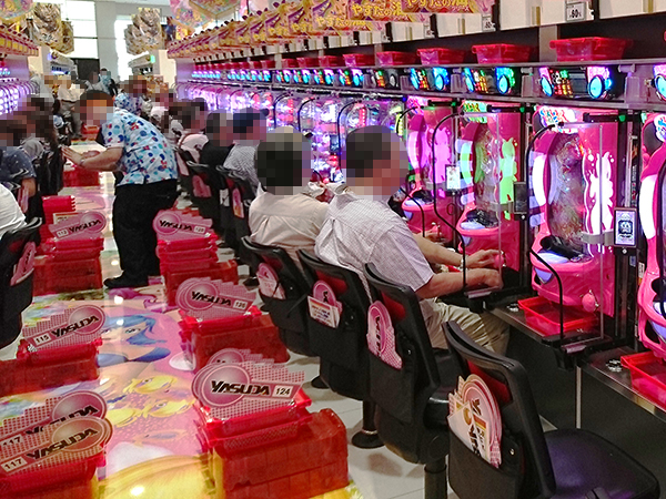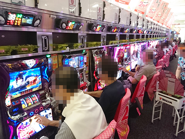 取材時は既に多くのプレイヤーが集結しており、店内はパチンコ・パチスロを問わず楽しげな表情でいっぱいだった。