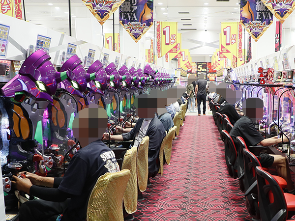 14時半ごろの1000円/890玉パチンコを見てみると、「新世紀エヴァンゲリオン〜未来への咆哮〜」といったエヴァシリーズや「PA大海物語5ブラックLT99ver.」などの海物語シリーズが高稼働。プレイヤーの嬉しそうな表情を多数確認している。
