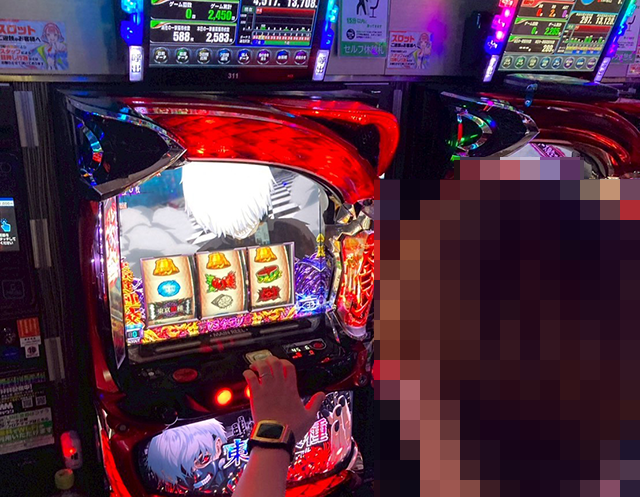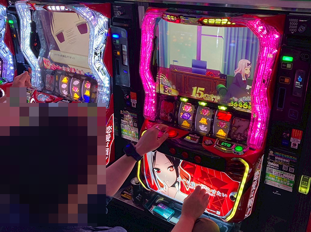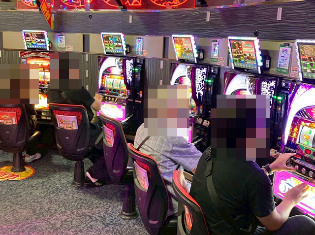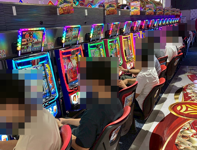 「スマスロモンキーターンV」や「スマスロ北斗の拳」などに、明るい表情でレバーを叩いている姿が並んでおり、あちこちから活気が感じられた。