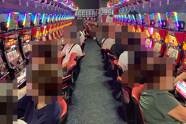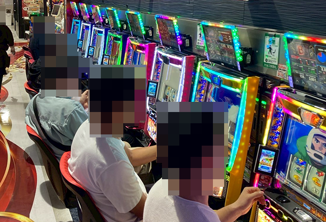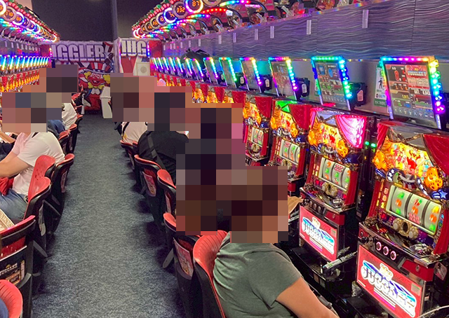 最新機種の「ネオアイムジャグラーEX」でも、プレイヤーたちが活躍。