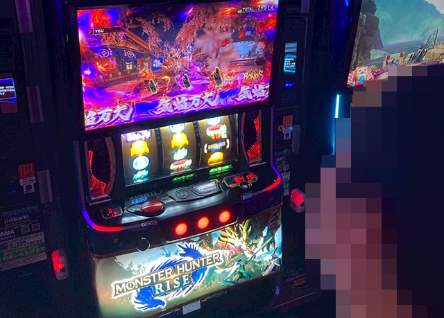 「スマスロ モンスターハンターライズ」も活気が大きく、出玉が8,500ptに迫っている台があった。