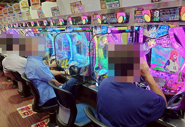 最新機種の「eフィーバーブルーロック」がほぼ満席となっていた。