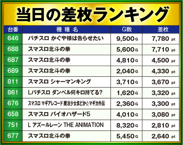 レポートの最後に「Super D’STATION倉賀野店」の差枚ランキングも掲載!