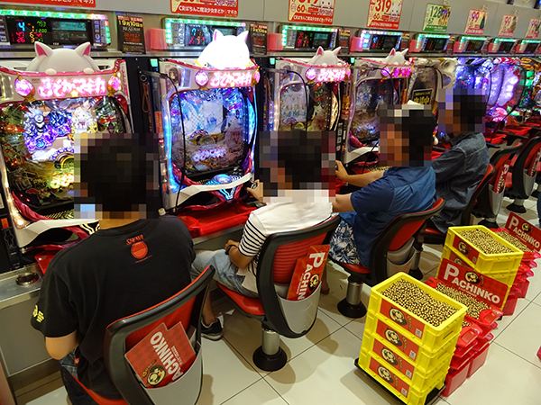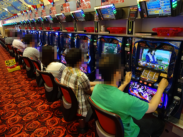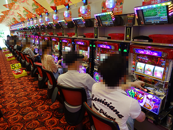 海物語シリーズは4円・1円パチンコ共に盛況。特に女性プレイヤーや年配層の姿が多く見受けられ、楽しそうに遊技する姿があった。