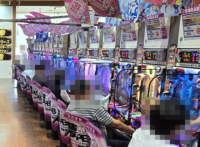 パチンコをみると、ミドルタイプから遊パチまで、さまざまな機種が楽しまれていた。