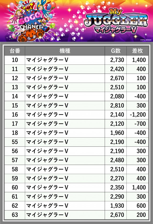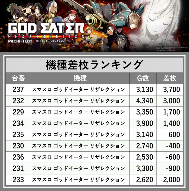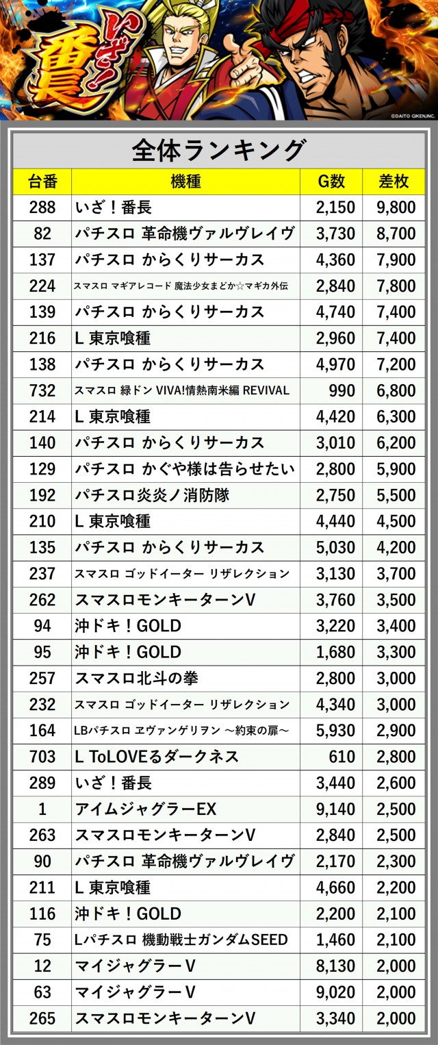 ※差枚数順に掲載しています