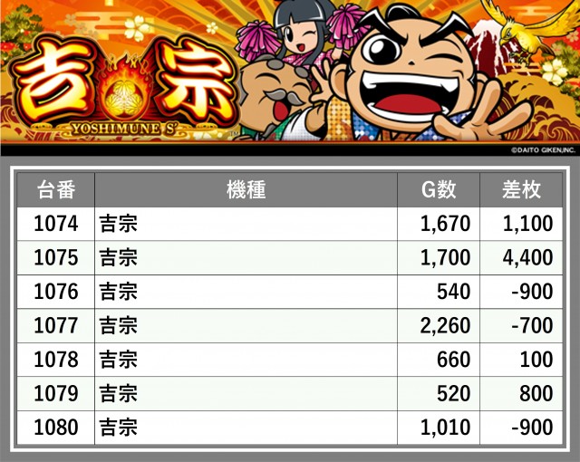 厳選された取材対象機種をはじめ、その他スロット全体から好記録が飛び出した!プレイヤーが楽しんだ1日を下記データにて振り返ってみて欲しい。
