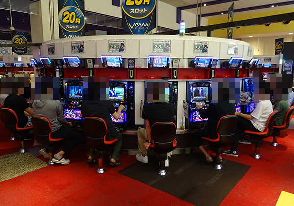 1円パチンコの海物語シリーズや5円パチスロの「SLOTギルティクラウン」など、さまざまな機種が楽しまれていた。