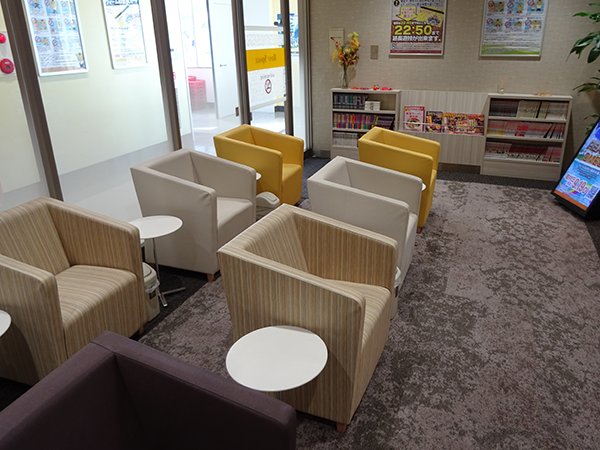 レストコーナーには雑誌や漫画本、テレビなどが用意されている。禁煙となっているため、クリーンな空間のなかで過ごせるように思えた。