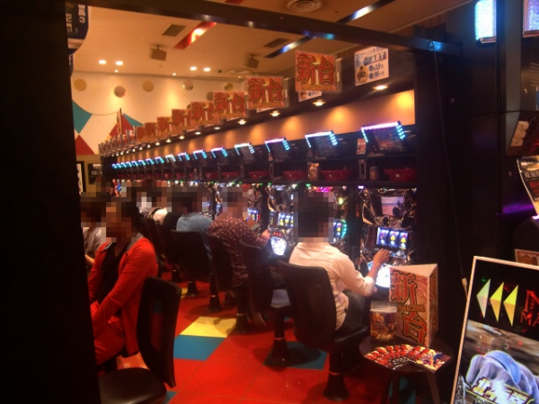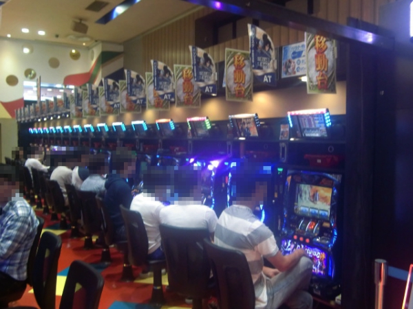 朝イチの20円パチスロは、いち早く「押忍!番長3」、「バジリスク~甲賀忍法帖~絆」、「沖ドキ!-30」に向かうプレイヤーが多くにぎわっていた。