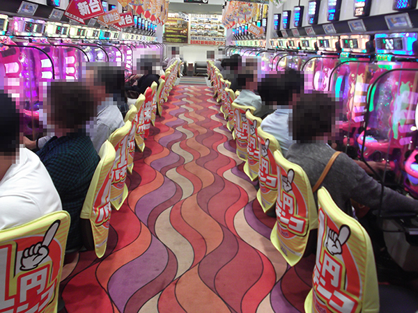 海物語シリーズの人気ぶりは4円パチンコのみならず1円パチンコでも健在。特に女性プレイヤーや年配層の姿が多く見受けられ、楽しそうに遊技する姿があった。