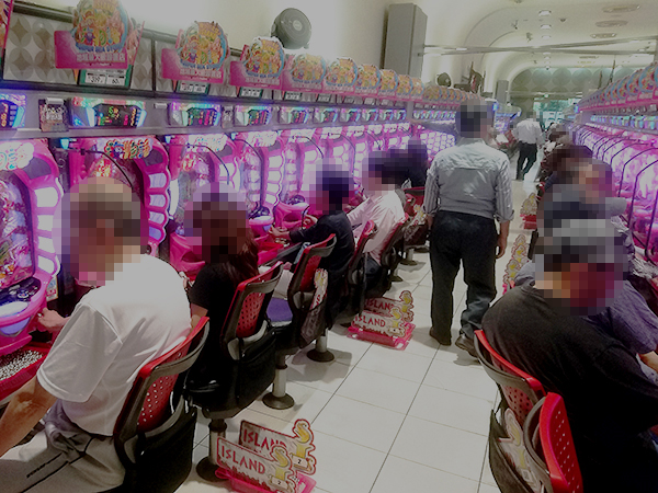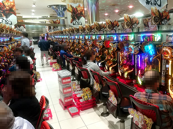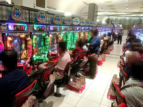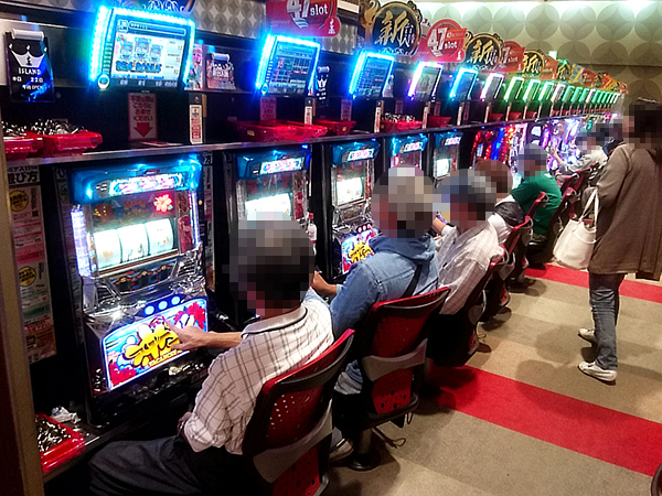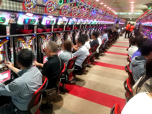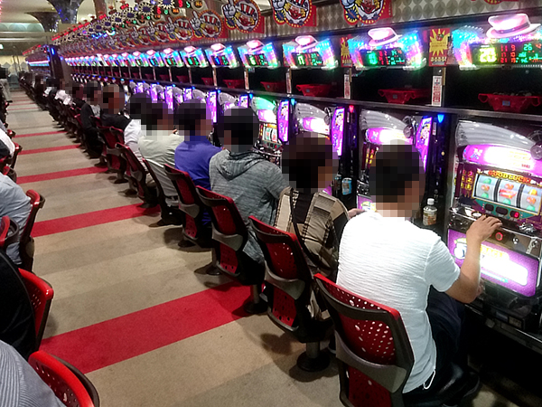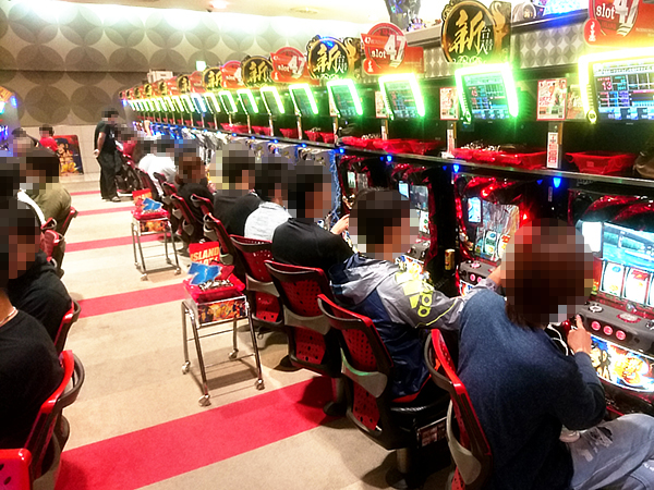 取材時は既に多くのプレイヤーが集結。パチンコ・パチスロを問わず、にぎやかな雰囲気で活気にあふれていた。