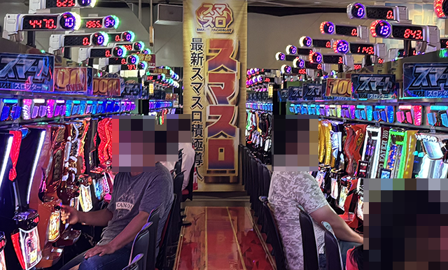 9月14日、沖縄県うるま市にある「アムズガーデン赤道店」へと向かった。今回の取材は、「スマート取材」だ。幅広い機種に活気があるなかで、スマスロに注目していった。