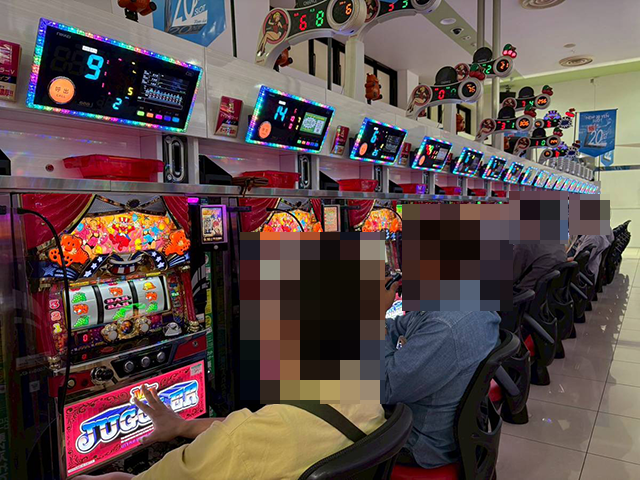 とくに「マイジャグラーⅤ」が支持されており、持ち玉で遊技をおこなっている姿がみられた。
