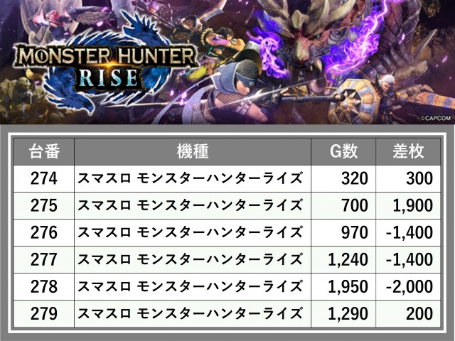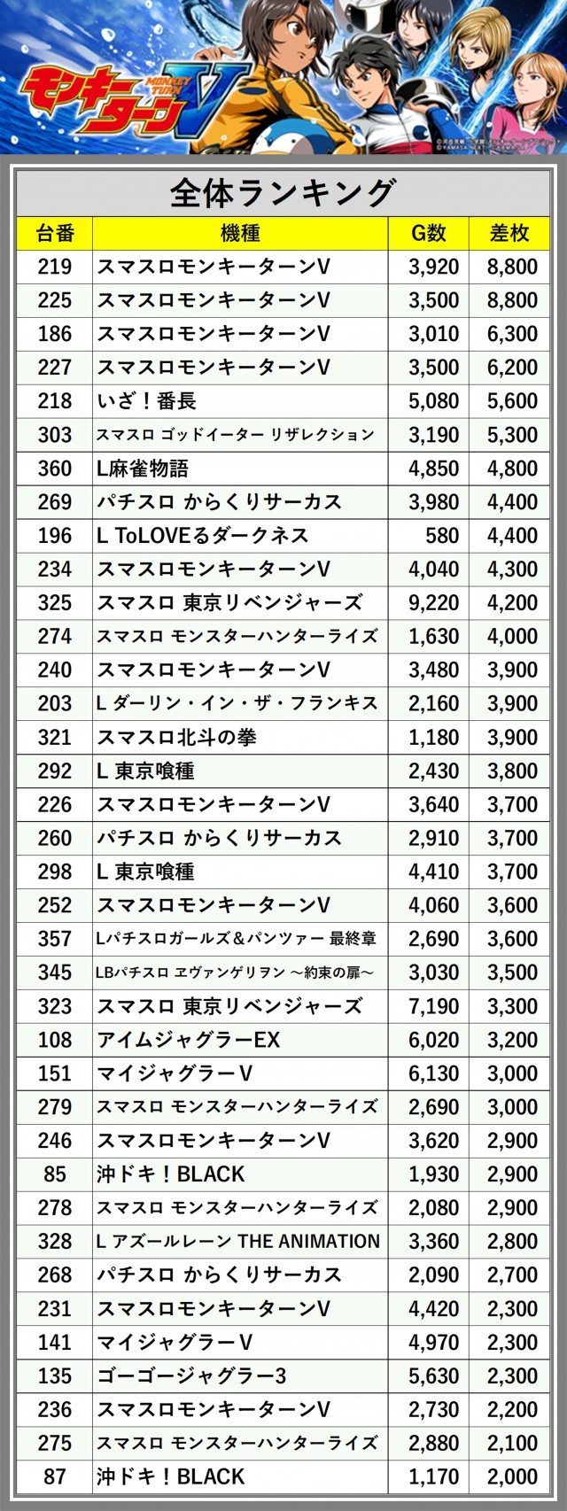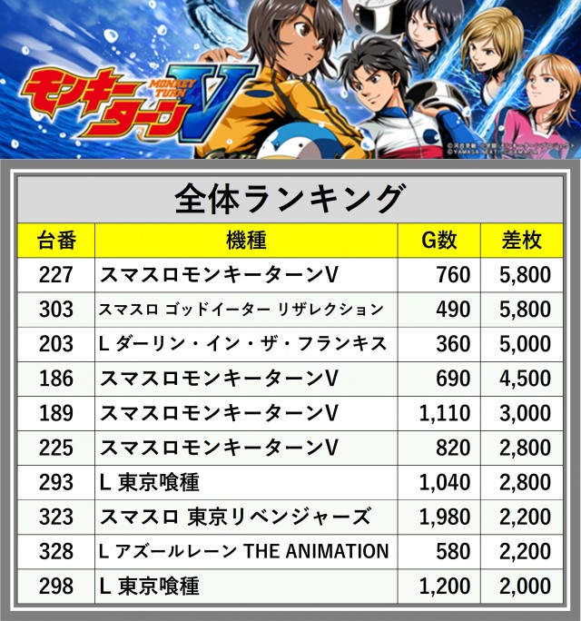 厳選された取材対象機種をはじめ、その他スロット全体から好記録が飛び出した!プレイヤーが楽しんだ1日を下記データにて振り返ってみて欲しい。