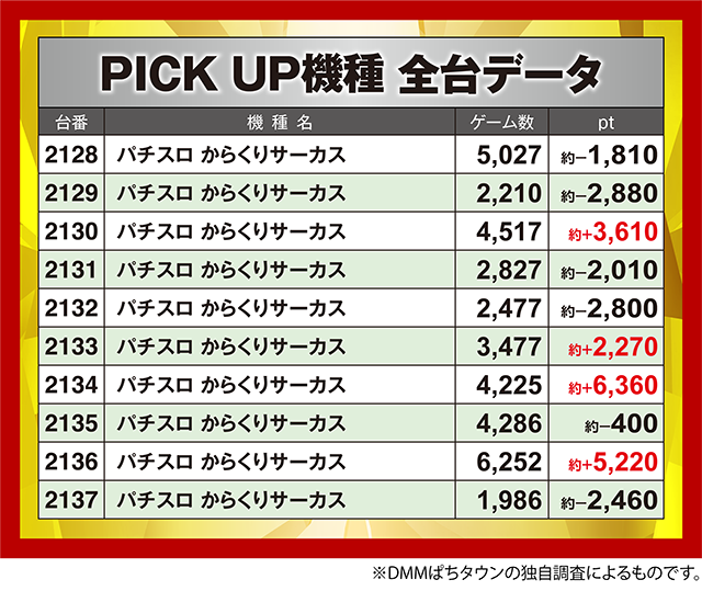 PICK UP機種・全台データ