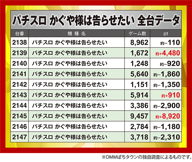 「パチスロ かぐや様は告らせたい」の2145番台が約+9,000ptクラス!!