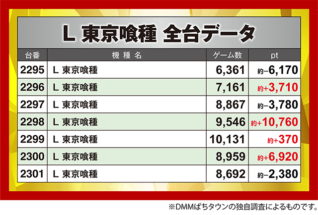 「L 東京喰種」では、2298番台が約+10,760pt。