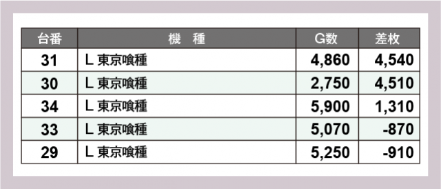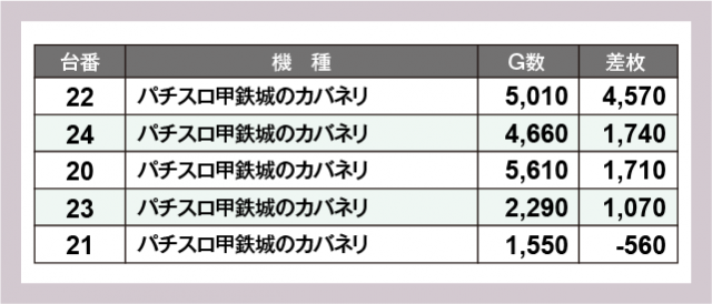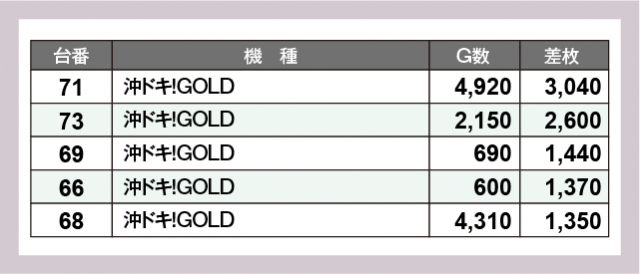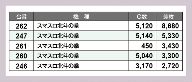 ※差枚数順に掲載しています