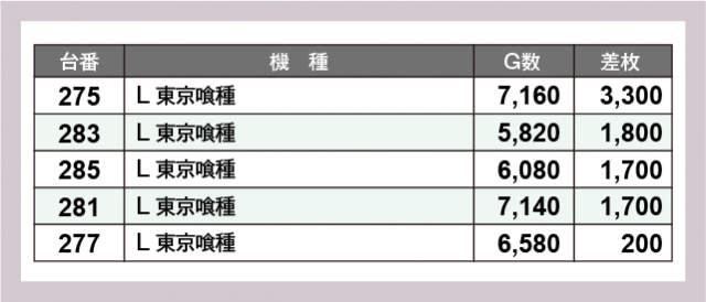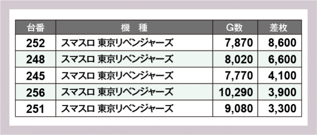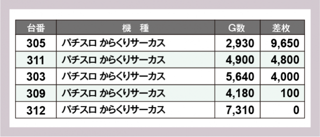 ※差枚数順に掲載しています