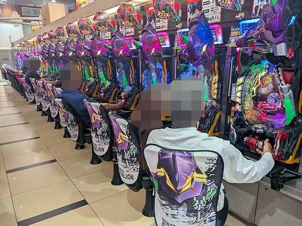 14時半ごろの4円パチンコでは「P大海物語5スペシャル」や「新世紀エヴァンゲリオン〜未来への咆哮〜」で、プレイヤーたちの見事な活躍ぶりを目にしている。