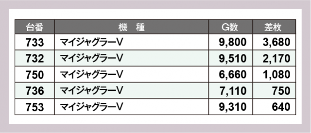 ※差枚数順に掲載しています