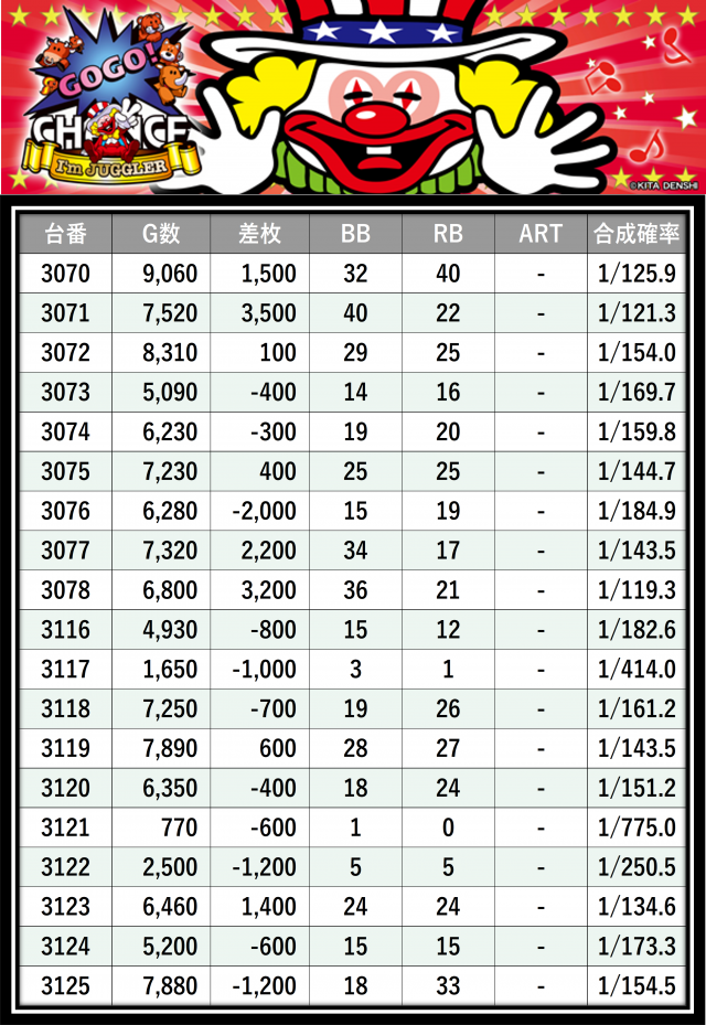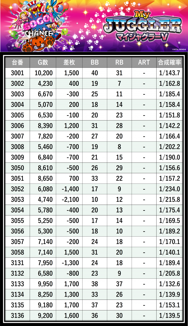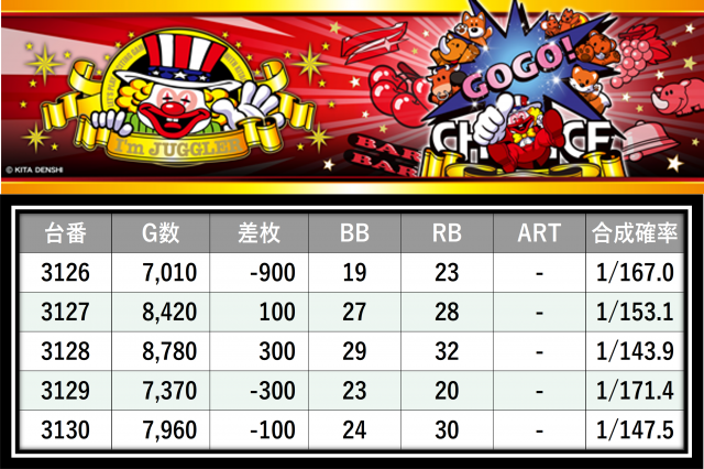 その結果の中から、ぱちタウンが注目すべきポイントを厳選してユーザーにお届け!プレイヤーが楽しんだ一日を下記データにて振り返ってみて欲しい。