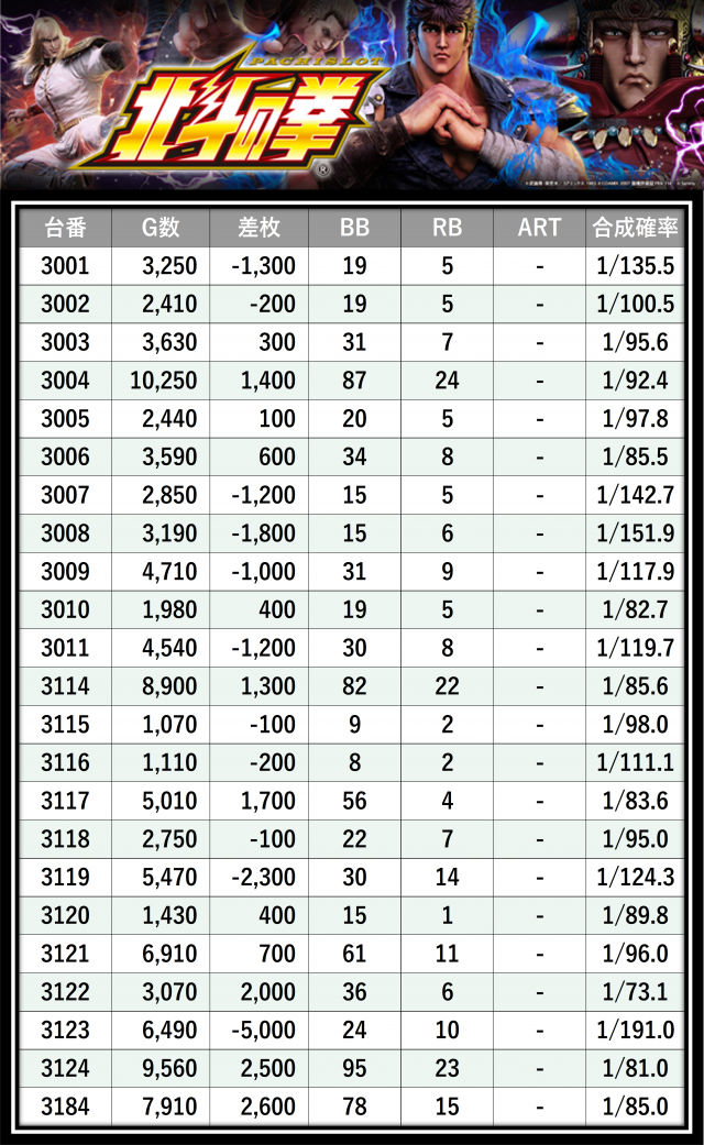 その結果の中から、ぱちタウンが注目すべきポイントを厳選してユーザーにお届け!プレイヤーが楽しんだ一日を下記データにて振り返ってみて欲しい。
