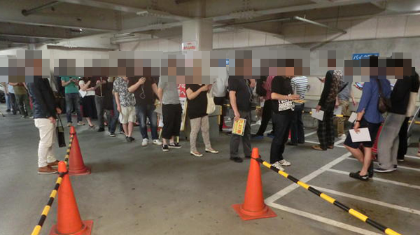 開店時の入場方法は整理券の番号順となっており、この日は9時30分から配布される入場整理券を70名前後のプレイヤーが受け取っていた。