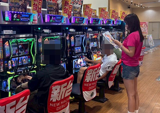 「スマスロ 東京リベンジャーズ」でもプレイヤーの表情は明るく、遊技を満喫している様子。