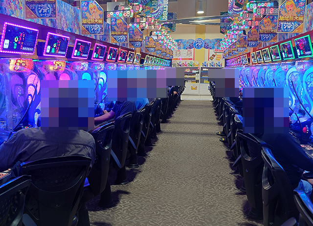 店内をみてみると、パチンコとパチスロの両方から、明るい雰囲気が伝わってきた。