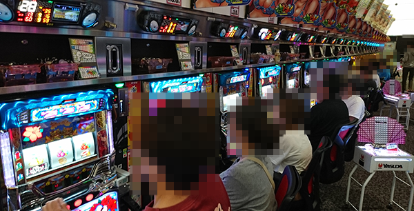 20円パチスロにおいて、とくに盛り上がっていたのが「沖ドキ!」。機種の性能を最大限に発揮しているような姿があちこちでみられた。