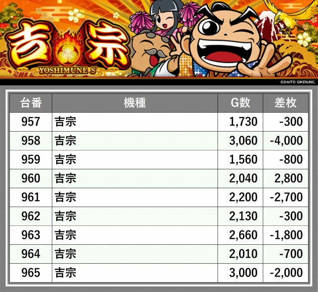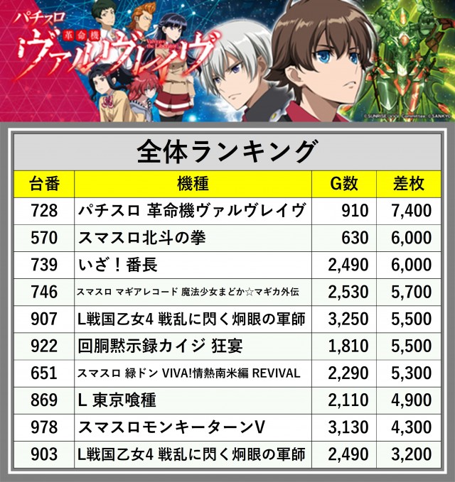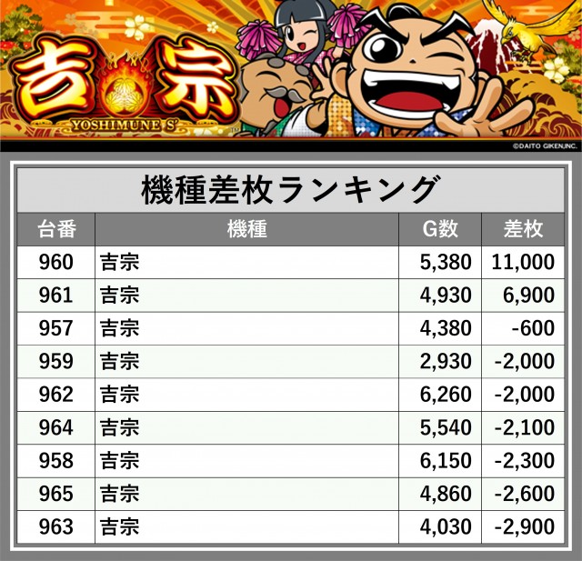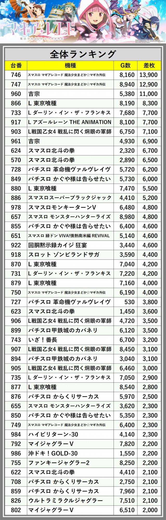 厳選された取材対象機種をはじめ、その他スロット全体から好記録が飛び出した!プレイヤーが楽しんだ1日を下記データにて振り返ってみて欲しい。