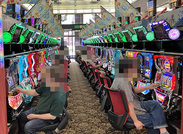 パチスロコーナーをみると、スマスロを中心に楽しそうな光景が広がっていた。
