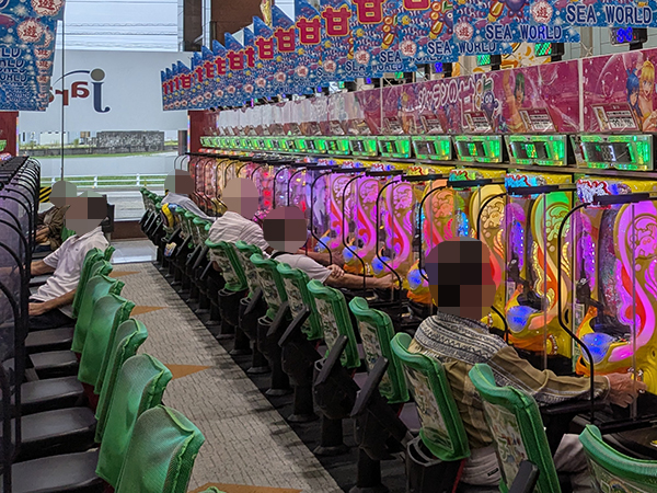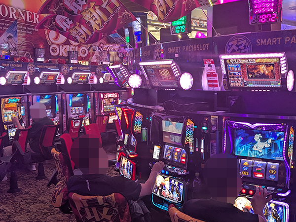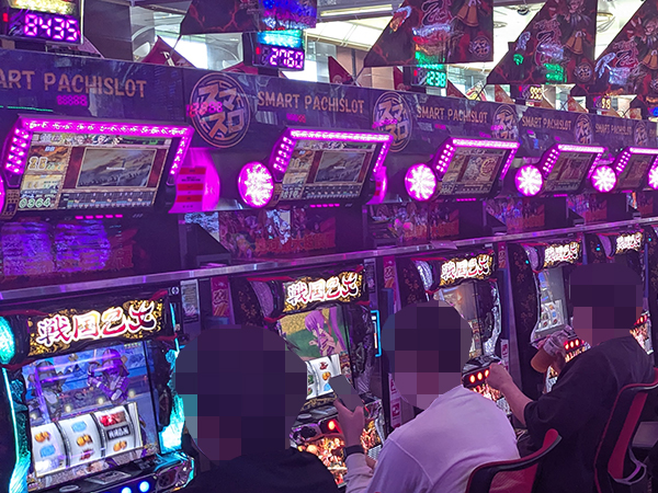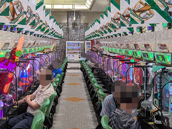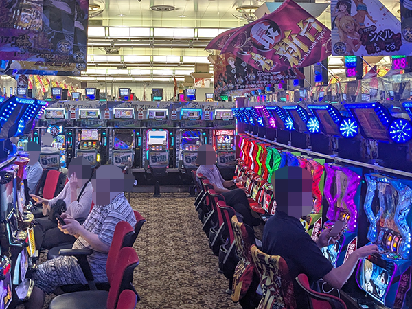 取材時は既に多くのプレイヤーが集結し、パチンコ・パチスロを問わずにぎやかな状況となっていた。
