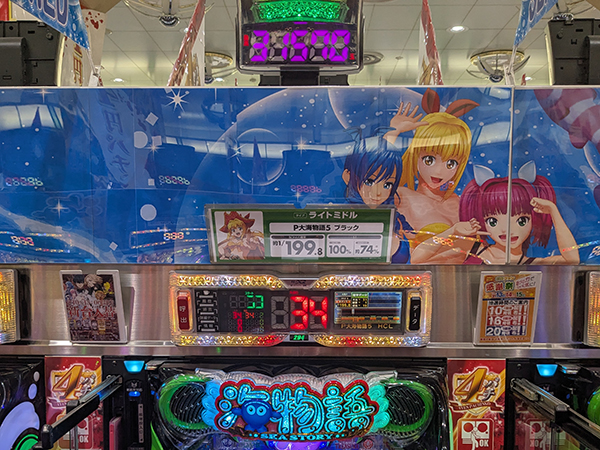 4円・0.5円パチンコをチェックすると「P大海物語5 ブラック」といった海物語シリーズの盛り上がりが大きい。シマ全体に華やかな光景が広がっていた。