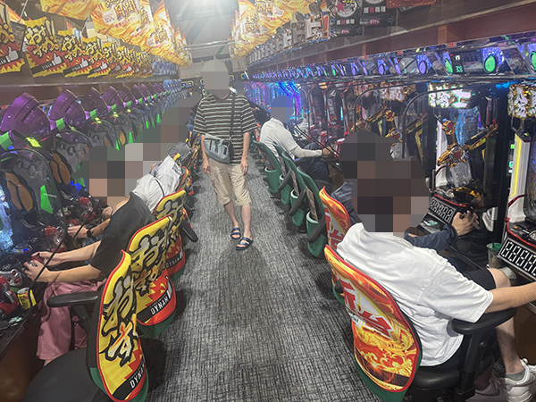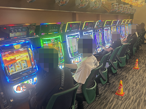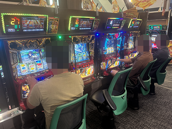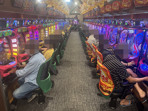 取材時は既に多くのプレイヤーであふれており、パチンコ・パチスロを問わず楽しげな表情でいっぱいだった。