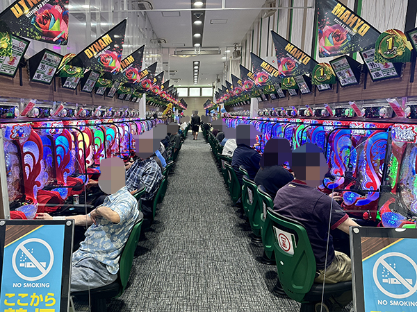 14時半ごろの4円パチンコでは「e東京リベンジャーズ」や「e 東京喰種」、「eフィーバー炎炎ノ消防隊2 紅丸ver.」が人気で、プレイヤーの嬉しそうな表情を多数確認している。