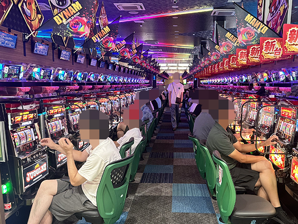 店内には老若男女を問わずプレイヤーが集合。パチンコ・パチスロの各シマから活気が感じられた。