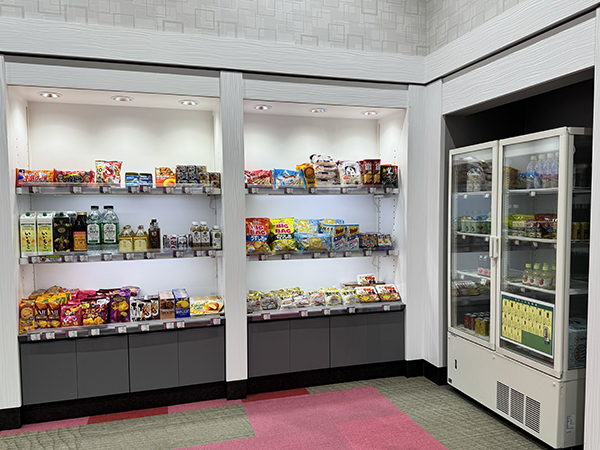 景品コーナーにはお菓子・インスタント食品・酒類など多彩なアイテムが揃っており、プレイヤーたちの目を引いていた。