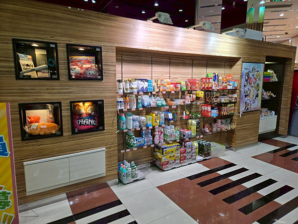 景品コーナーには日用品・インスタント食品・お菓子など多彩なアイテムが揃っており、プレイヤーたちの目を引いていた。