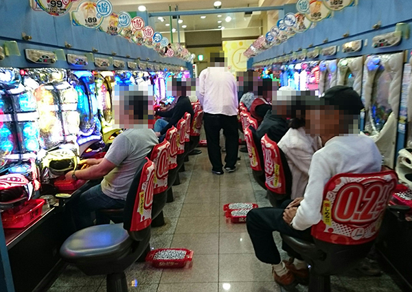 パチンココーナーをのぞいて見ると、低貸しの1円・0.2円パチンコで華やかな活躍を目撃。