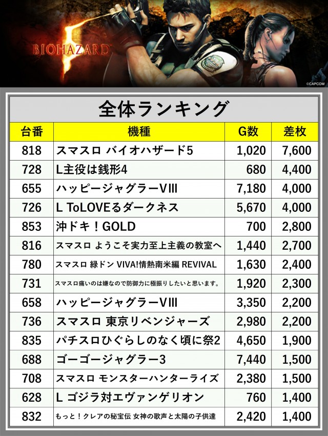 ※差枚数順に掲載しています